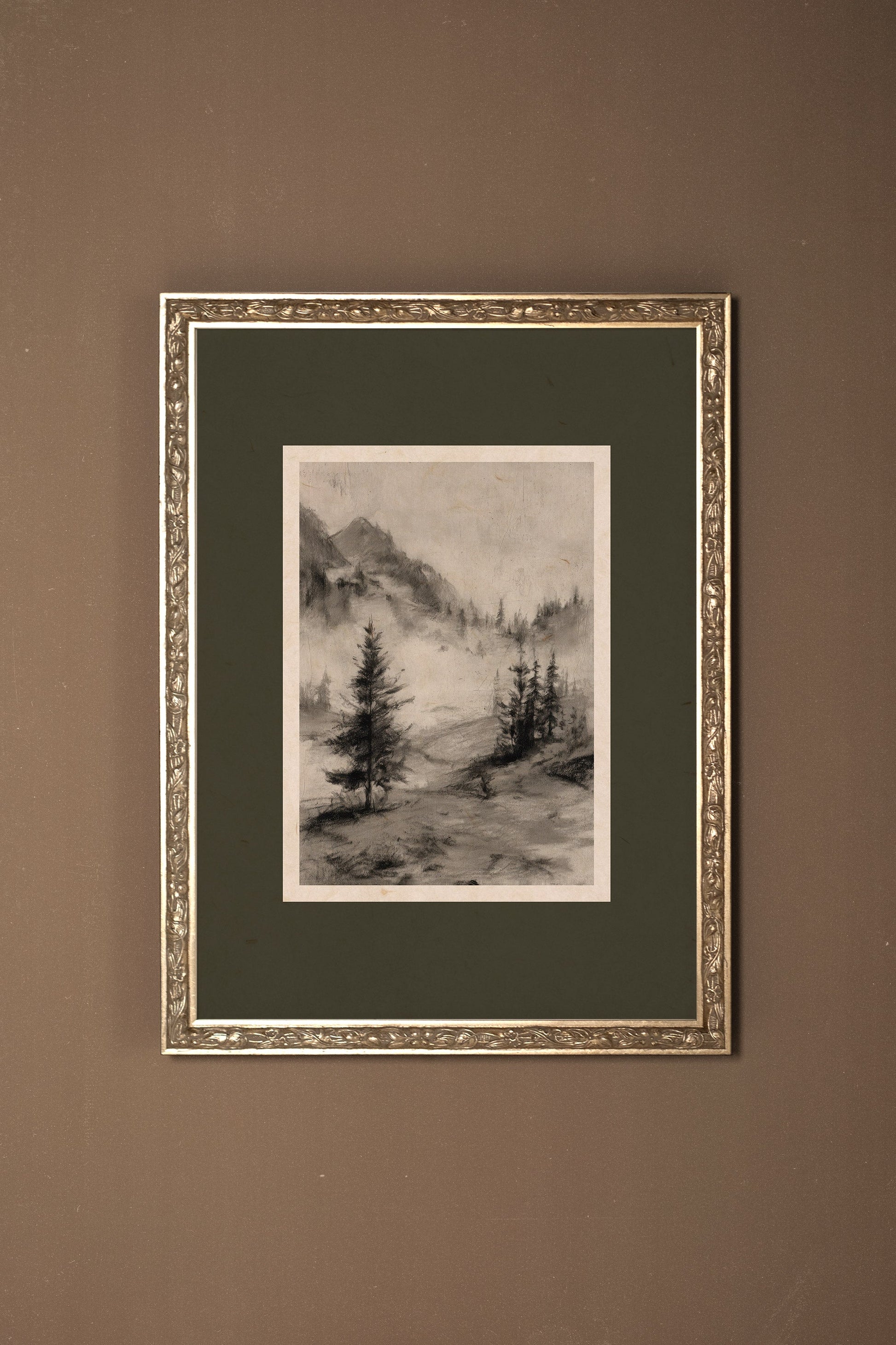 Des montagnes esquissées en douceur émergent dans une vallée enveloppée de brume. L’illustration, sobre et naturelle, dégage un sentiment d’élévation et de sérénité. Idéal pour un intérieur aux tons neutres ou rustiques. Le style rappelle les carnets de voyage anciens. Une fenêtre poétique sur les grands espaces.