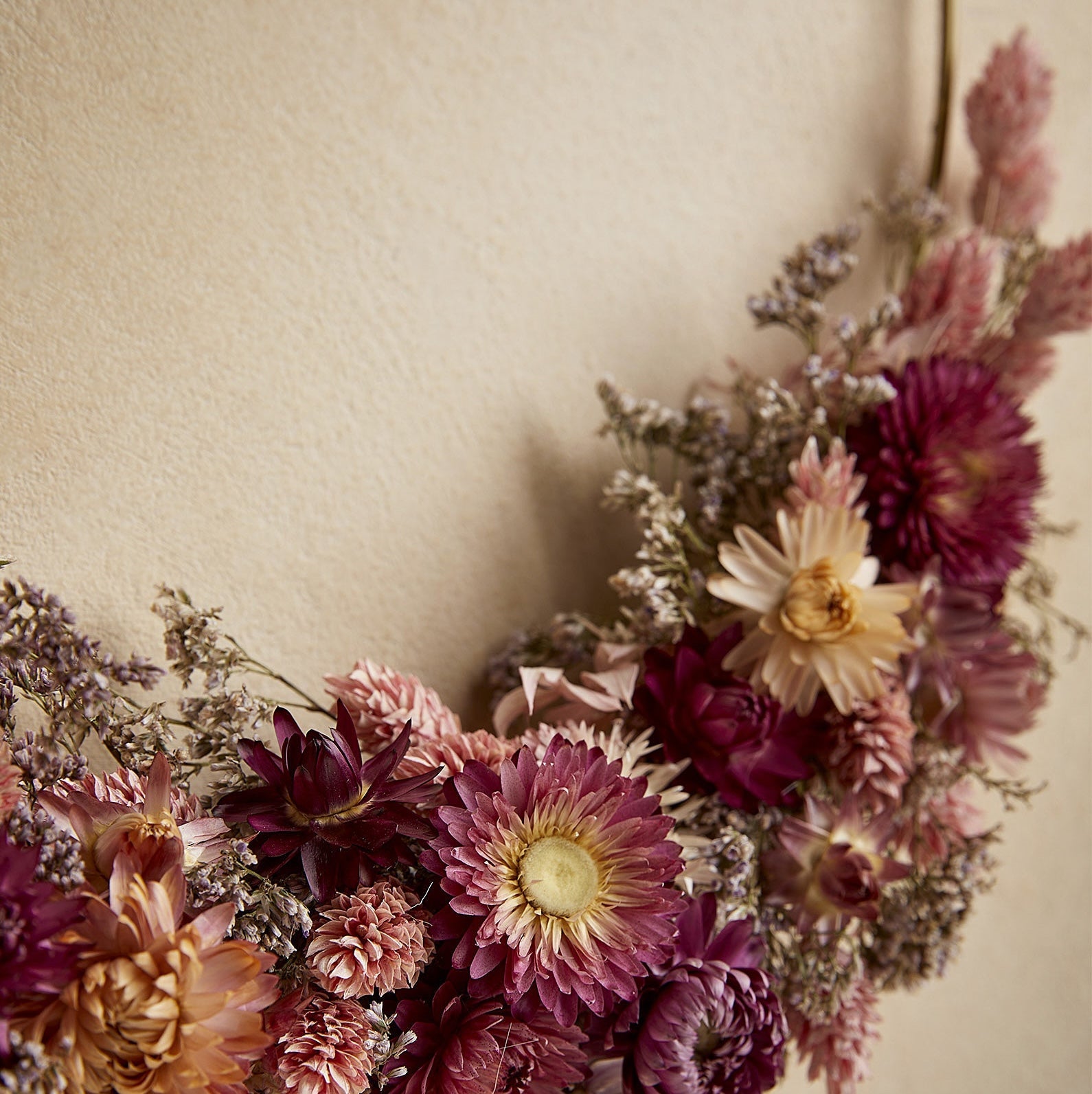 - Recette florale : phalaris rose, immortelles roses, limonium rose et ruscus rose
