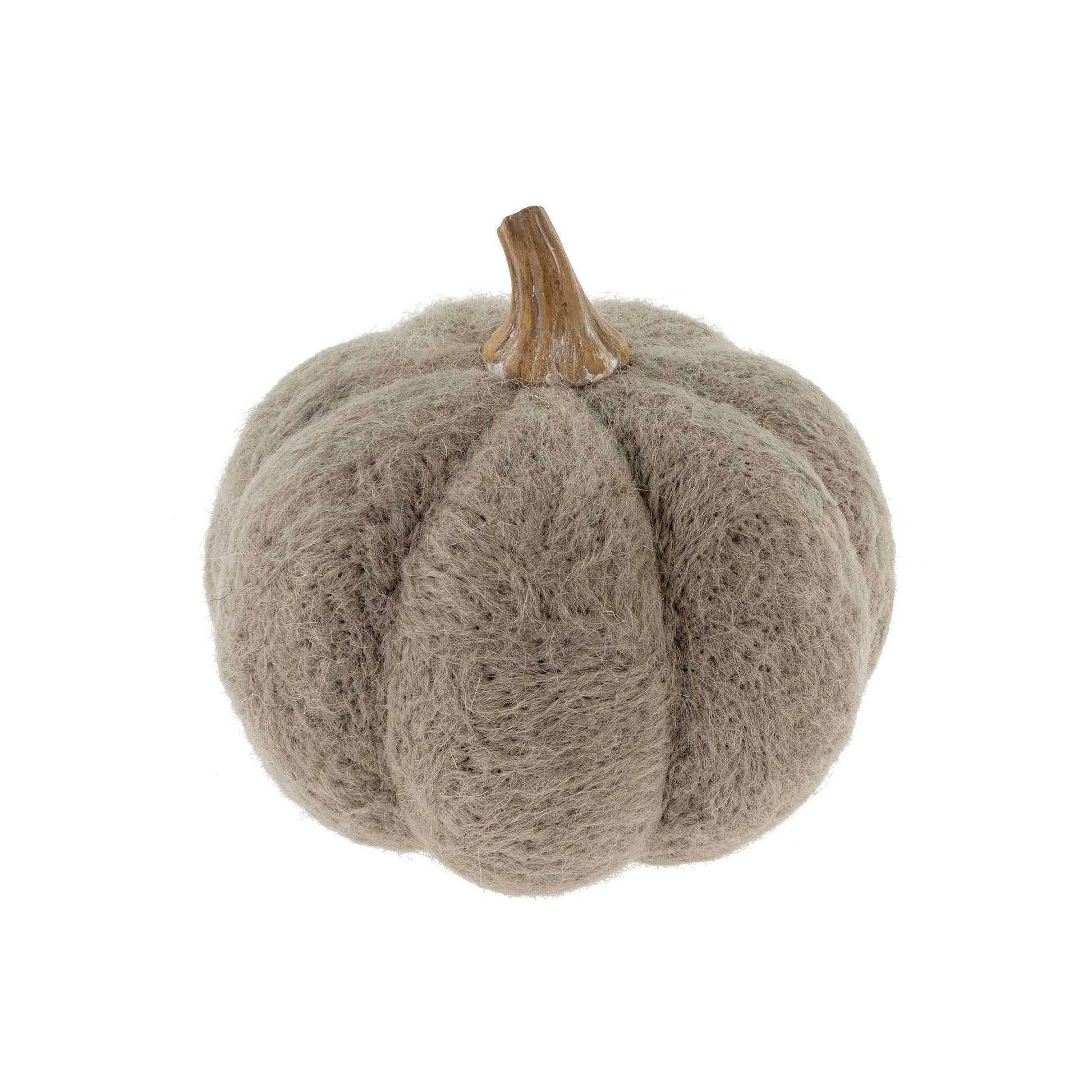 La petite citrouille en feutre gris apporte une touche de douceur et de texture à votre décoration d'automne. Fabriquée à la main en laine feutrée et dotée d'un pédoncule en résine aux tons naturels et neutres, cette citrouille allie un réalisme saisissant à un style intemporel et original.