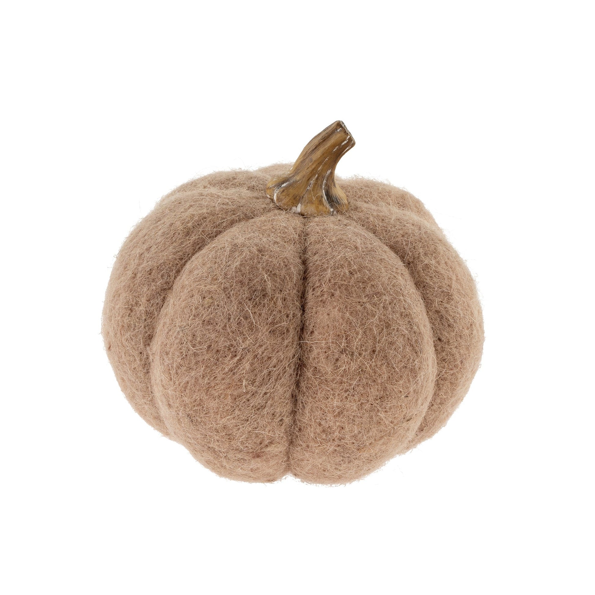 Célébrez l'automne avec cette petite citrouille en feutre beige, un élément décoratif artisanal qui apportera une touche de douceur et de chaleur à votre décoration. Fabriquée avec soin en laine feutrée douce et dotée d'un pédoncule en résine aux tons naturels, cette citrouille crée un effet réaliste, à la fois original et raffiné.