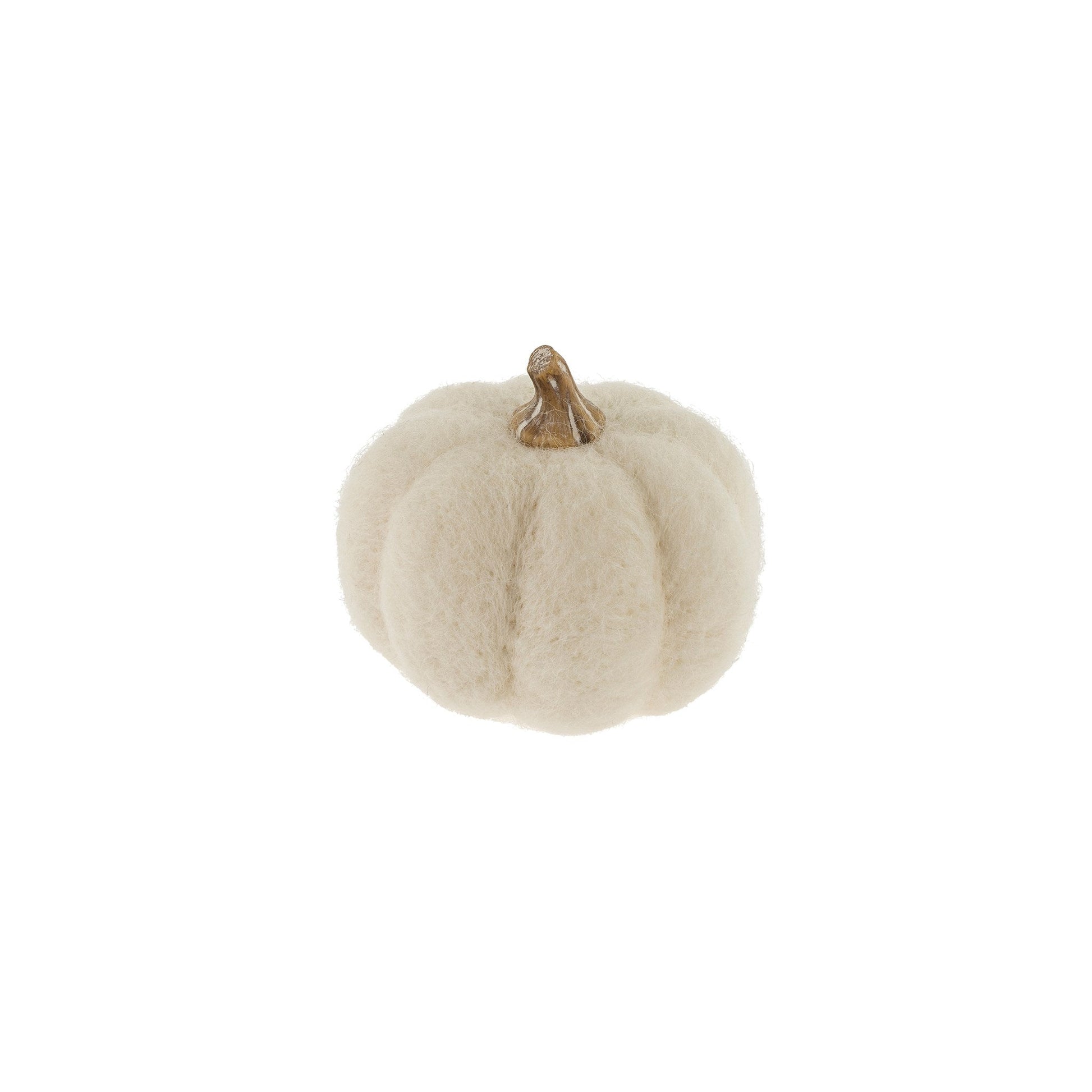 Apportez la beauté de l'automne à l'intérieur de votre maison avec cette petite citrouille en feutre blanc. Ce décor artisanal allie une texture douce et un style intemporel. Fabriquée en laine feutrée et dotée d'un pédoncule en résine, cette citrouille crée une ambiance chaleureuse et réaliste, à la fois élégante et originale.