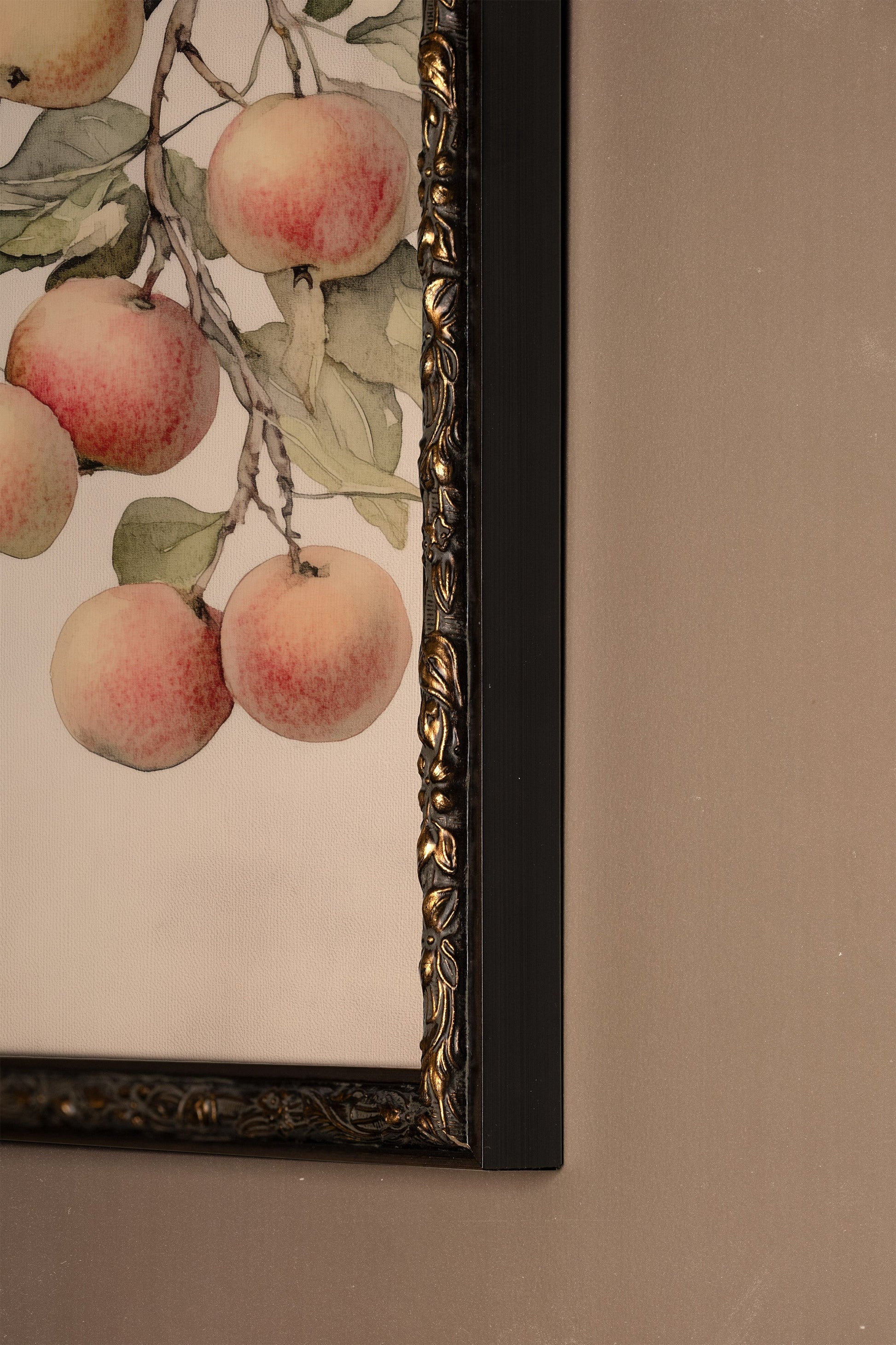 Cette toile rigide en cadre vintage bronze illustre la beauté intemporelle d’une branche de pommier, avec ses pommes mûres prêtes à être cueillies. Les tons doux et naturels créent une atmosphère chaleureuse et authentique, rappelant les paysages de campagne. Parfait pour apporter une touche rustique et élégante à votre intérieur.