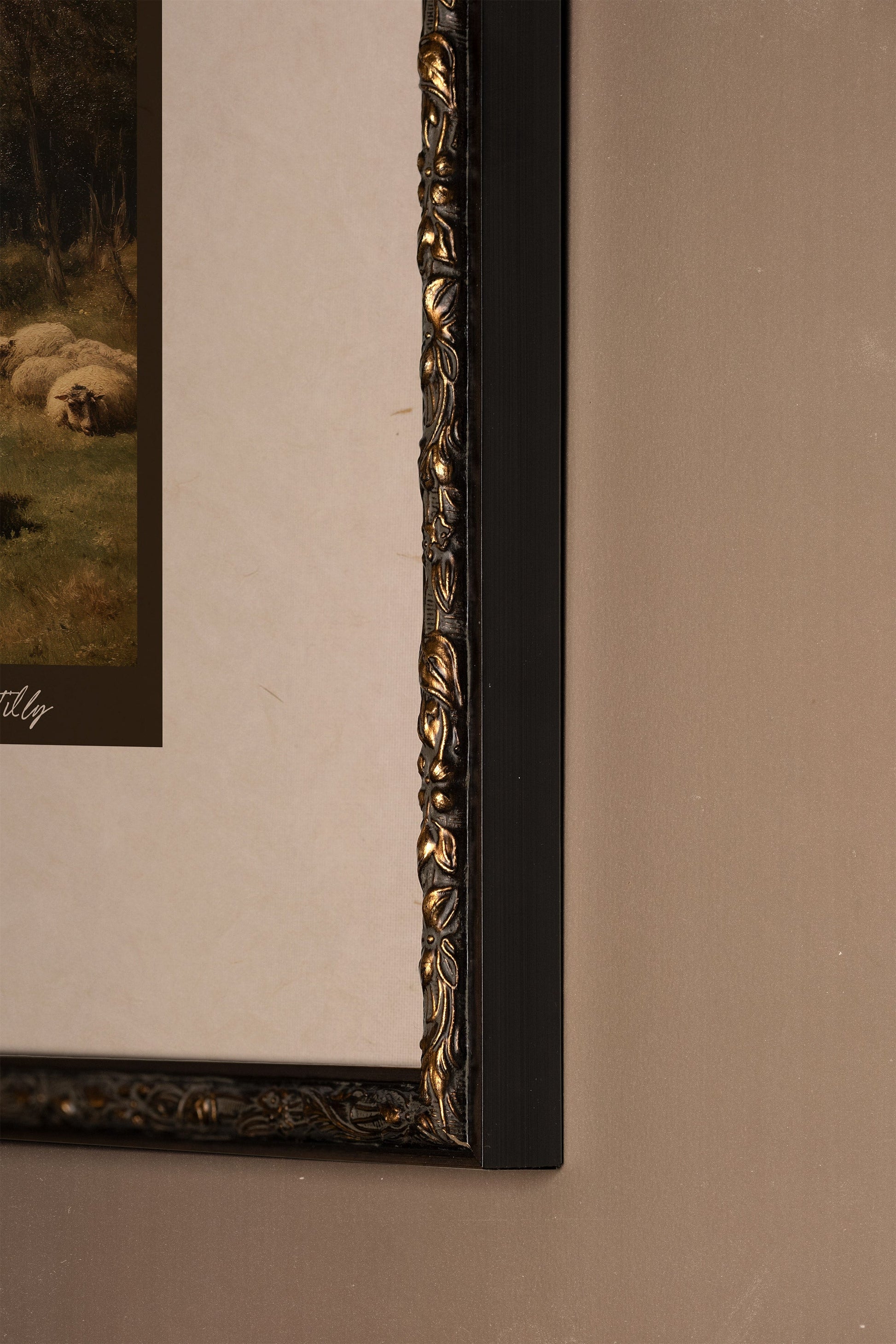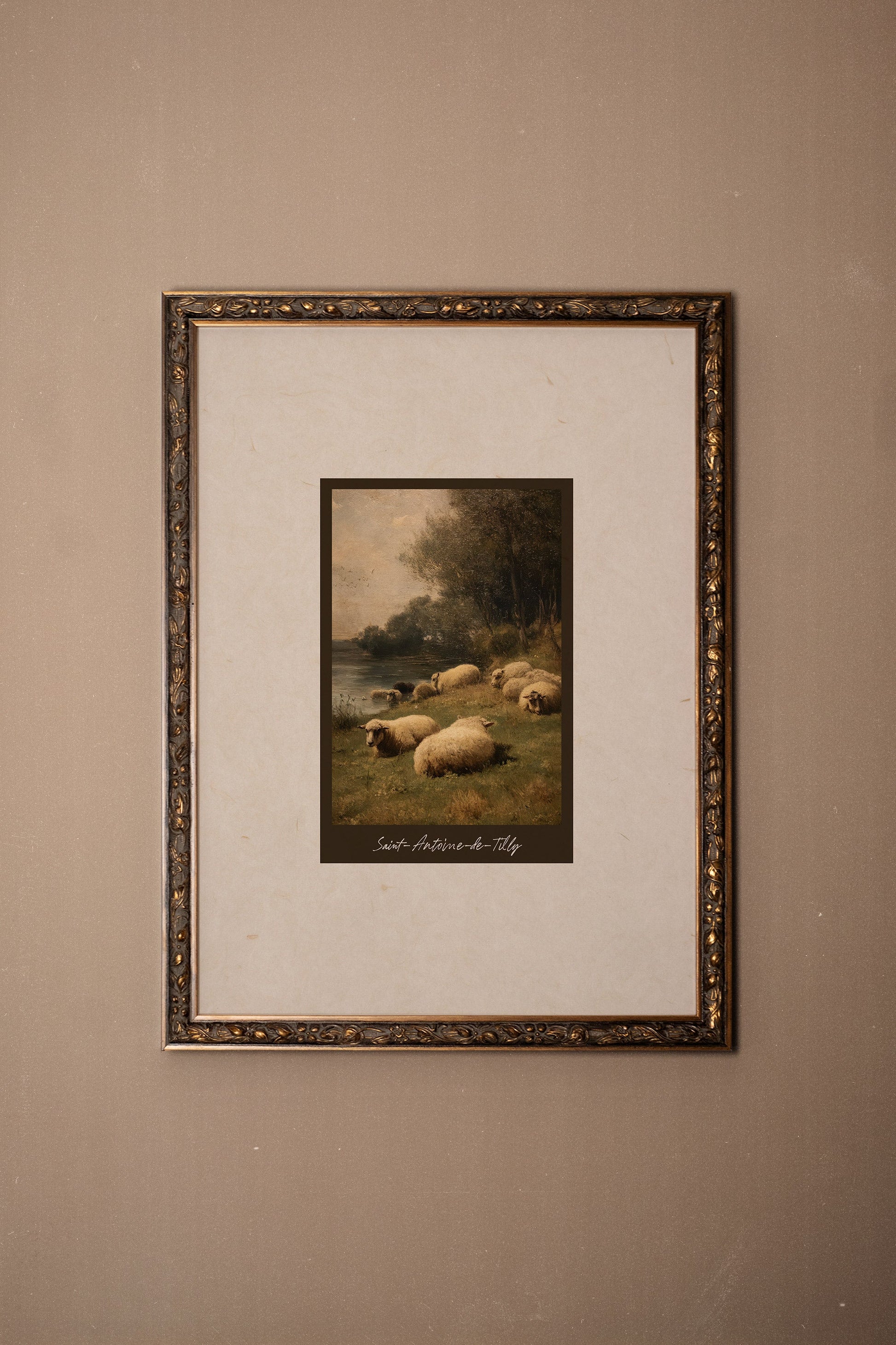 Un troupeau de moutons paisibles repose au bord d’une rivière, dans une scène rustique et réconfortante. L’œuvre évoque la vie tranquille des campagnes d’autrefois. Les tons chauds et le style pictural ajoutent un charme intemporel. Idéale pour une ambiance champêtre et nostalgique. Une bouffée de calme rural.