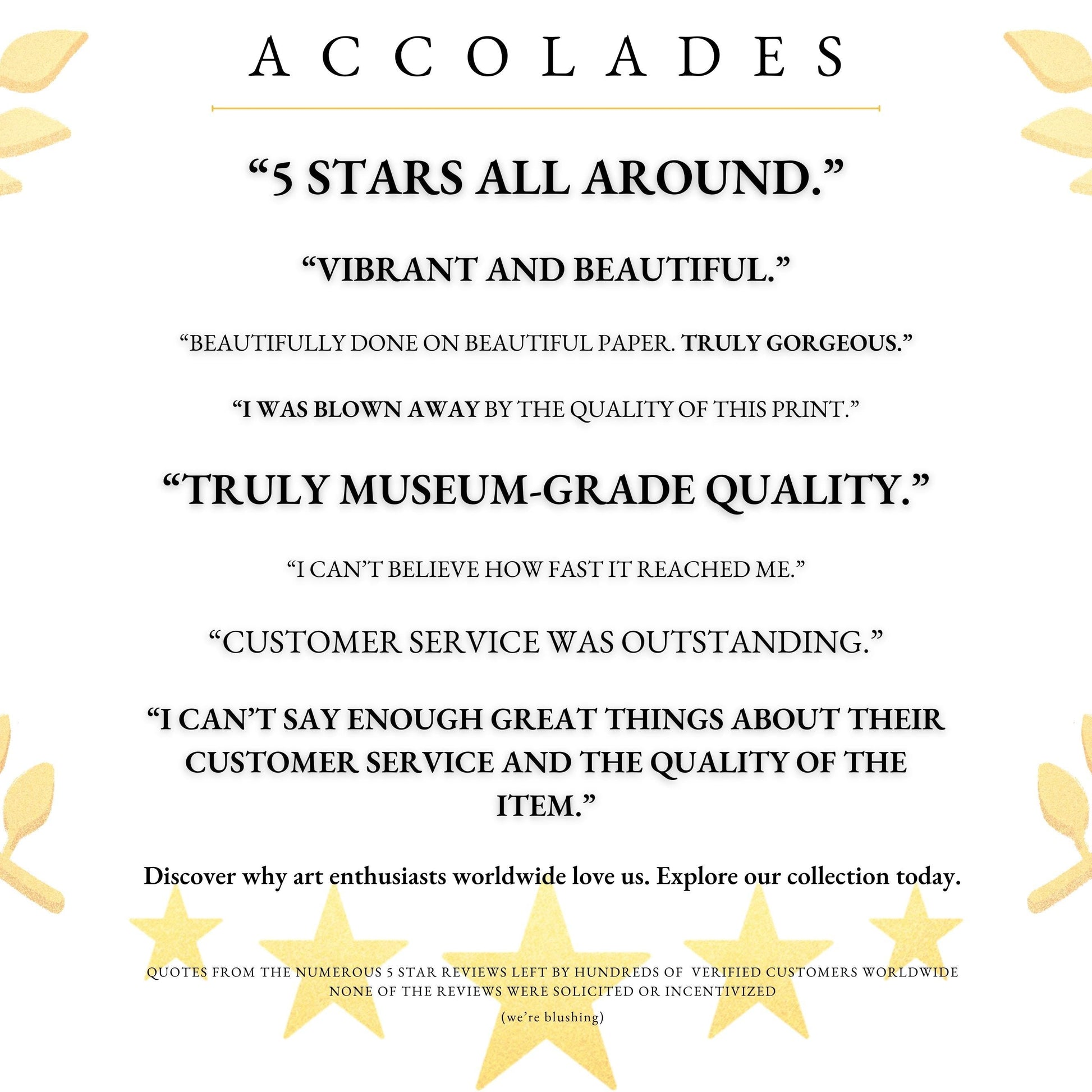 En choisissant nos tirages, vous investissez dans une œuvre d’art qui non seulement sublimera votre espace, mais préservera également la beauté et les détails de l’œuvre originale pour les années à venir. Que vous optiez pour l’élégance accessible de nos cadres standard ou la présence imposante de notre Édition Chef-d’œuvre, chaque tirage témoigne de la qualité et du savoir-faire artisanal.
